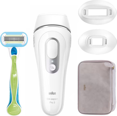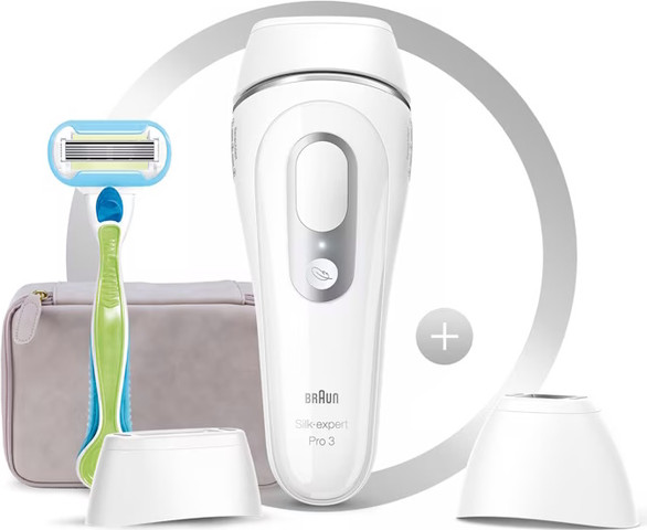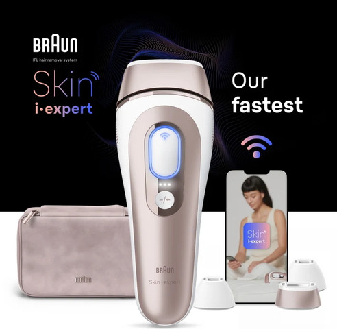 מסיר שיער בטכנולוגיית IPL כולל 3 ראשי הסרה, סכין ותיק מהודר Braun בראון Skin i·expert PL7257