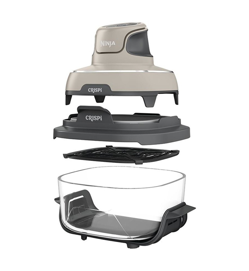 מערכת הבישול הניידת מזכוכית Ninja Crispi מספקת את עוצמת 1500 W של סיר טיגון אוויר בעיצוב מדליק .